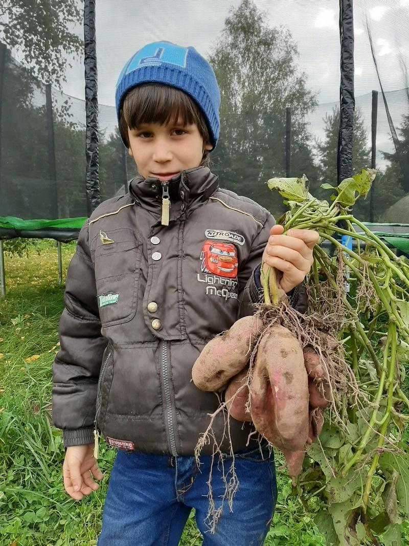 Через 90–120 днів батат сформує повноцінні клубні, готові до збору!