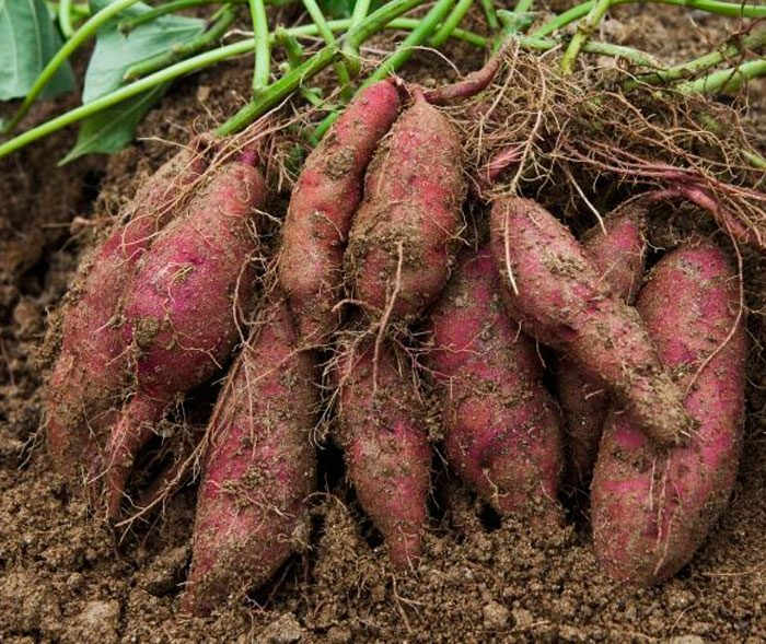 Батат одразу вкорінюється на місці, тому не потребує додаткового розсадження – він одразу росте у відкритому ґрунті.