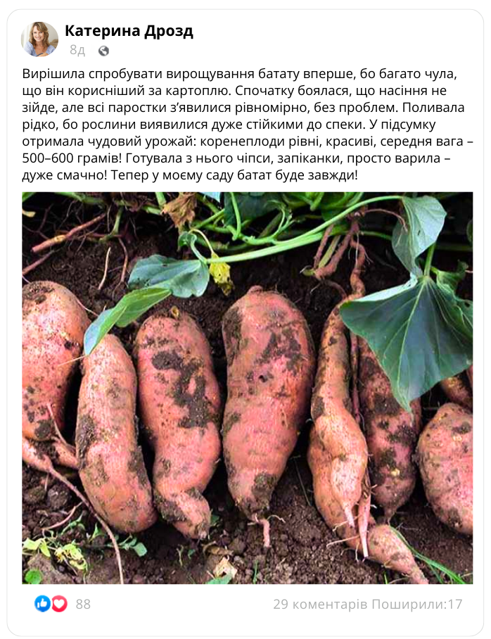 Сортовий батат «Murasaki»  для вирощування в Україні!