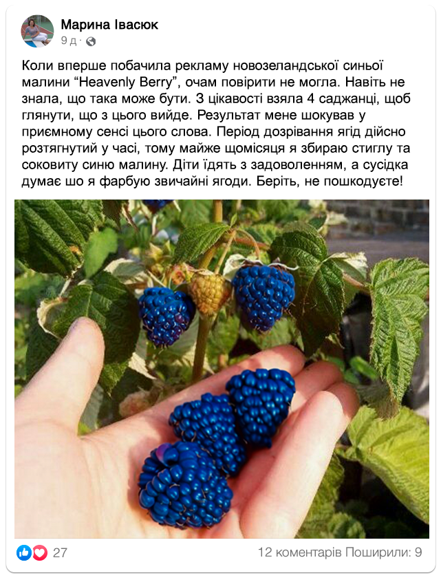 Синя малина “Heavenly Berry”: ягода, яка дивує!
