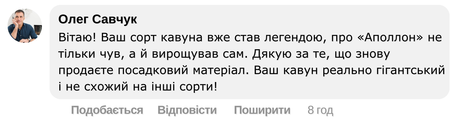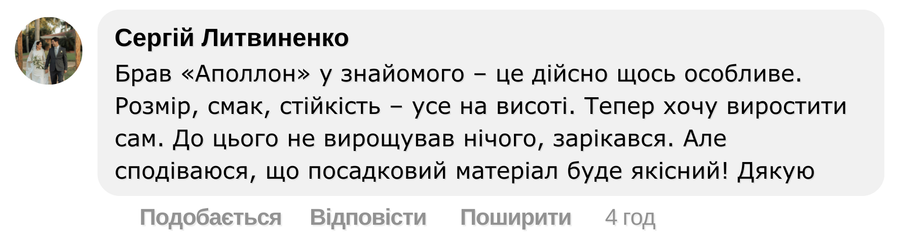 Микола Гринченко: Я завжди замовляю у перевіреного постачальника, щоб бути впевненим у якості. Для тих, хто хоче спробувати вирощувати «Аполлон», залюбки поділюся контактами – залишайте заявку у формі нижче!