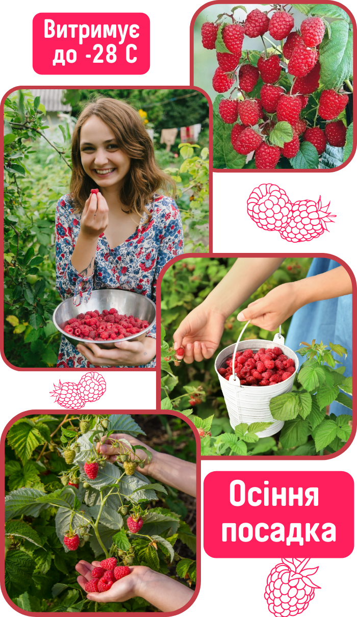 Сорти малинового дерева є справжніми гігантами з товстими стійкими пагонами та величезною масою зелені та великих ягід. Переваги малинових дерев, які яскраво описує реклама, на практиці найчастіше виявляються… правдою! Малинові дерева не лише інтенсивно ростуть, але й дивовижно стійкі і до шкідників, і до хвороб, і до морозів!