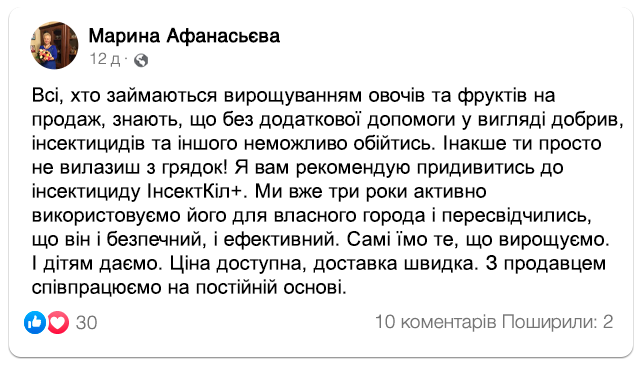 Важливо, що в плодах та овочах "ІнсектКіл+” не накопичується.