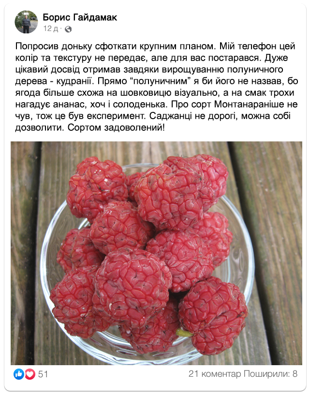 Характеристики сорту “Монтана”: полуничне дерево, адаптоване під український клімат