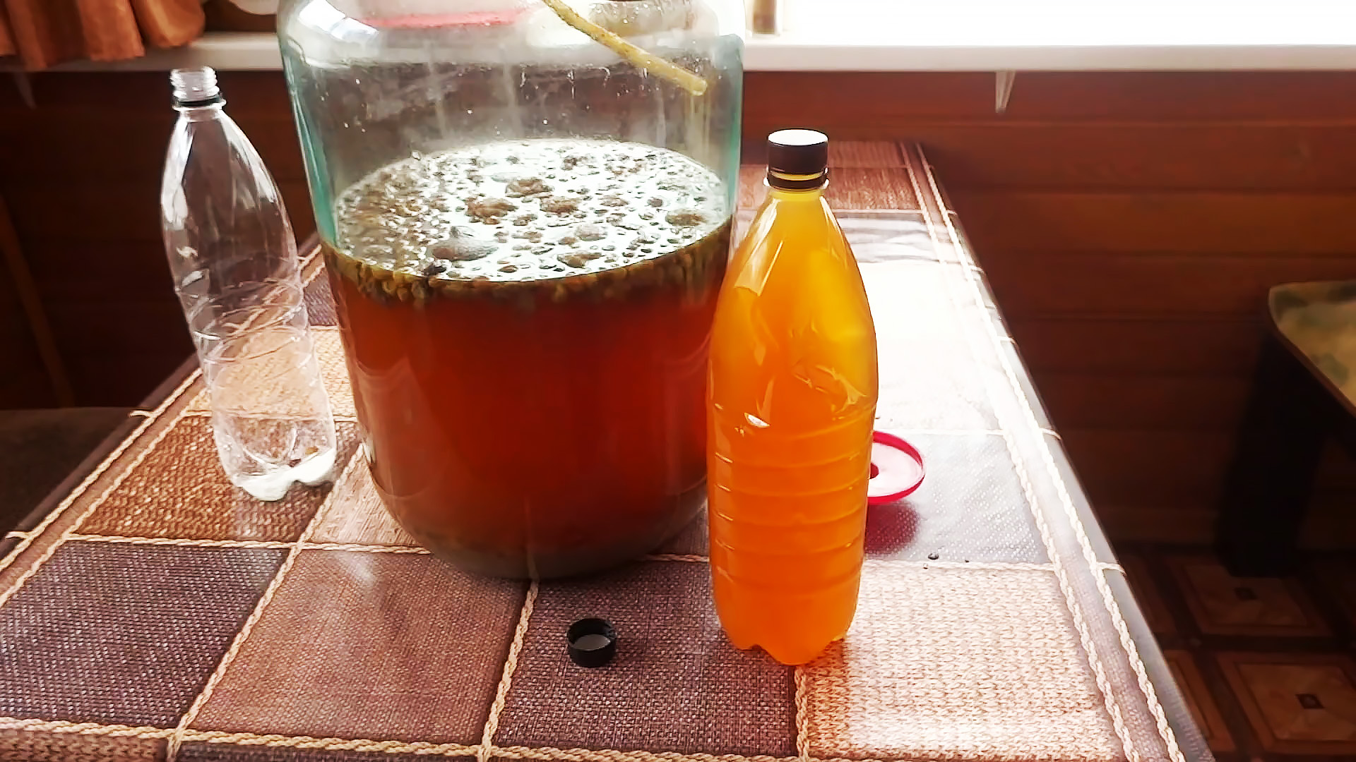 3. Відфільтрувати, додати цукор за смаком, розлити по пляшкам (на ¾ обʼєму). Закупорити.