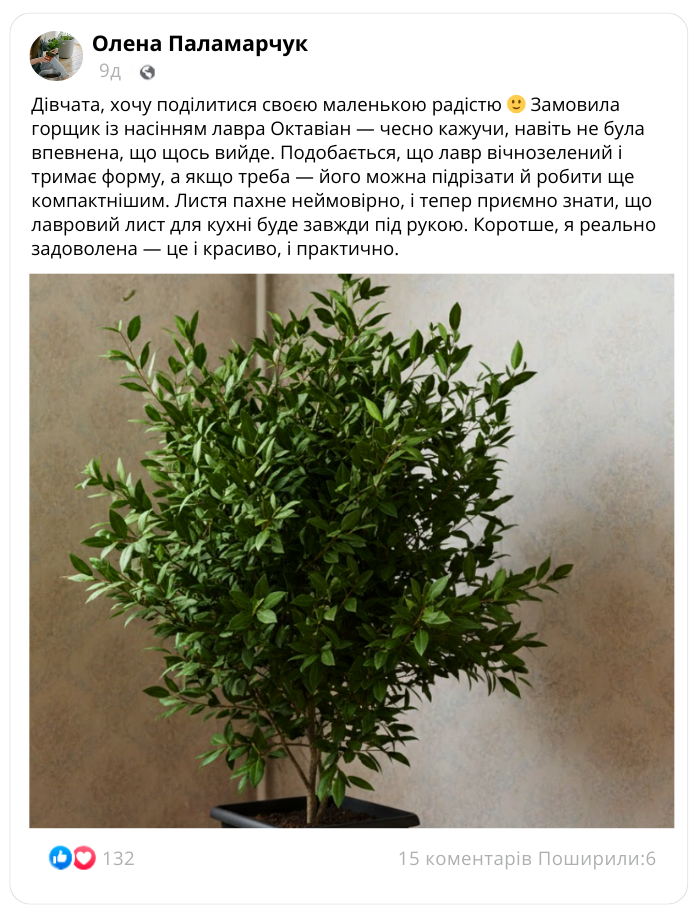 Вирощувати лавр «Октавіан» у горщику П9 легко!