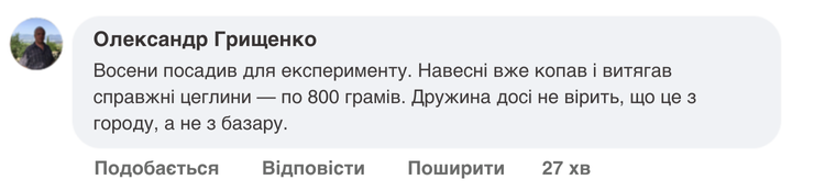 - Картоплі багато не буває. Цей сорт дає такий урожай, що його вистачає не тільки для всієї родини, але й для продажу. Люди охоче купують такого «гіганта», і це дає мені додатковий дохід.