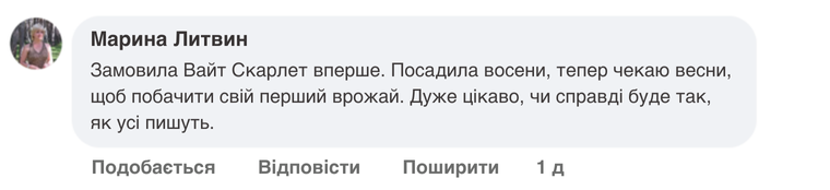 «Вайт Скарлет» не потрібні оприскування, бо в той час коли вона дозріває, потенційні шкідники не активні!»