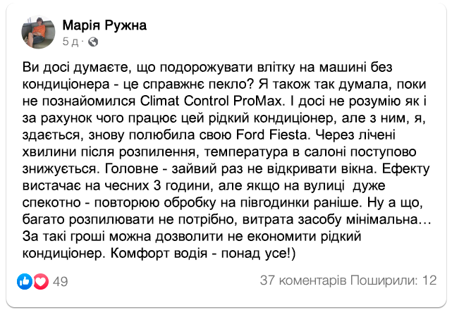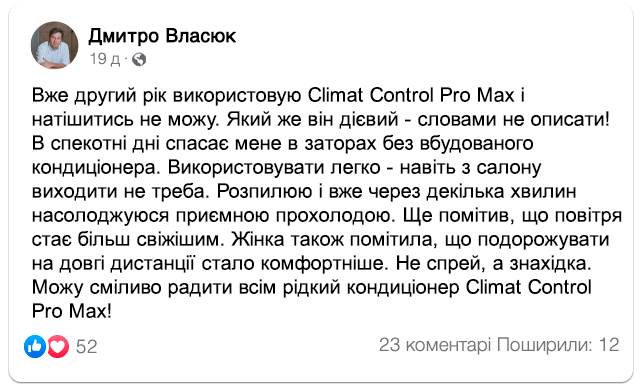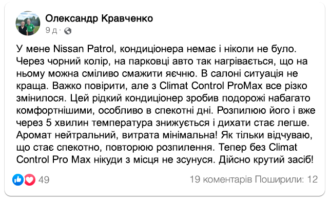 Замовляйте рідкий кондиціонер Climat Control ProMax для прохолоди в салоні вашого авто зі спекотною знижкою: