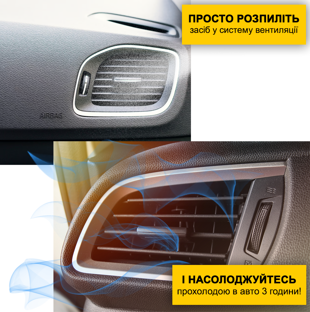 Починайте рух. Продукт буде проникати глибше в систему вентиляції та вже через 3-5 хвилин після розприскування рідкого кондиціонера, ви відчуєте зниження температури в салоні на 8-10 градусів.