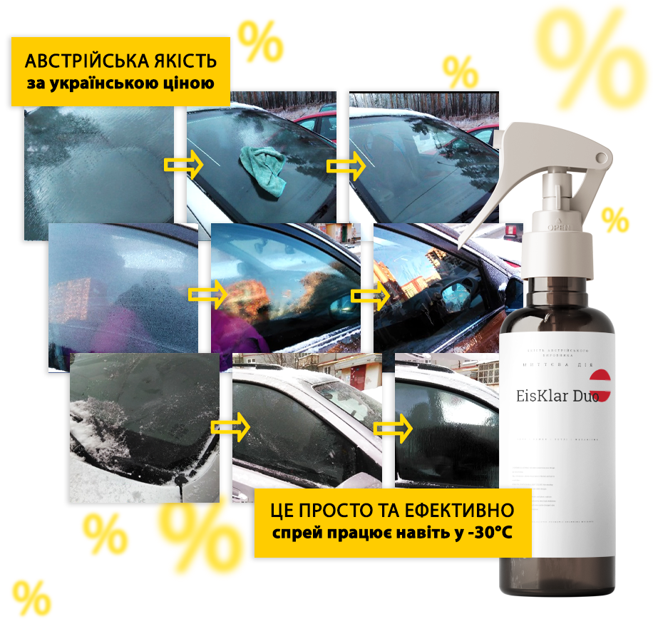 EisKlar Duo — ефективний австрійський засіб для миттєвого розморожування обледенілих поверхонь: