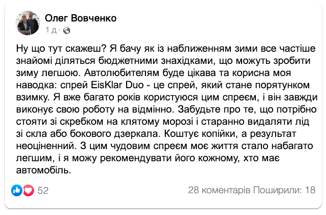 Ефективний засіб для миттєвого розморожування обледенілих поверхонь: